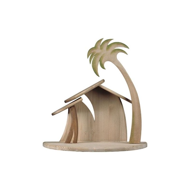 Deze houtsnijwerk kerststal is geschikt voor figuren van 12 cm.