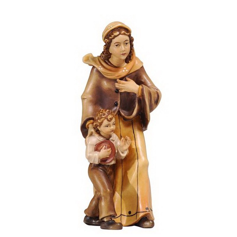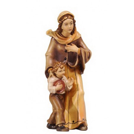 Houtsnijwerk Herderin Met Jongen voor kerstfiguren van 12 cm / Gekleurd