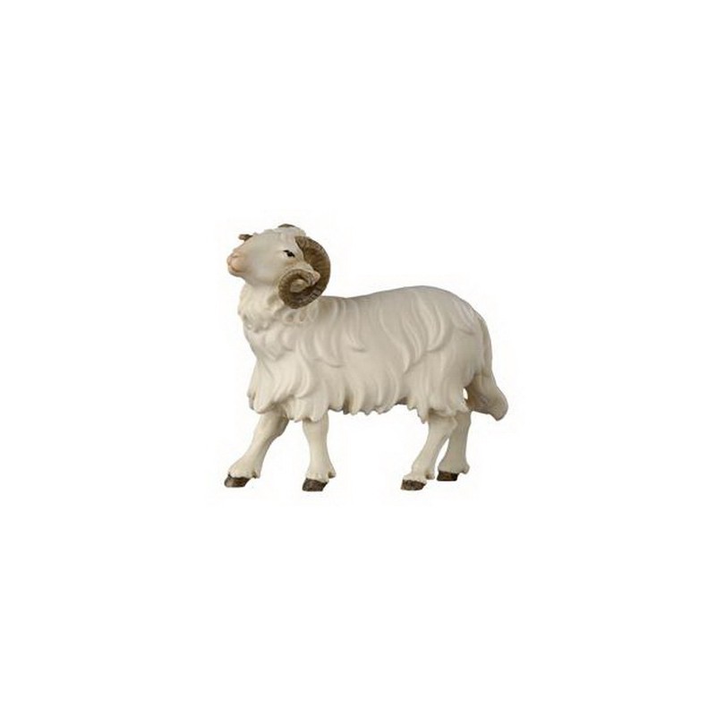 Houtsnijwerk Ram/links Kijkend voor kerstfiguren van 12 cm / Gekleurd