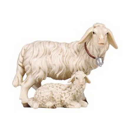 Houtsnijwerk Groep Schapen voor kerstfiguren van 12 cm / Gekleurd