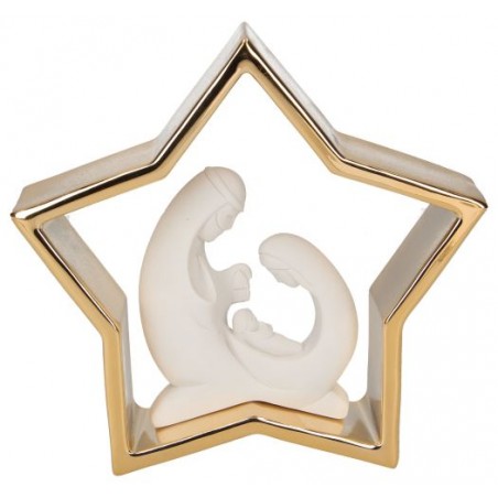 Heilige Familie in hars in een goudkleurig ster 15x15 cm