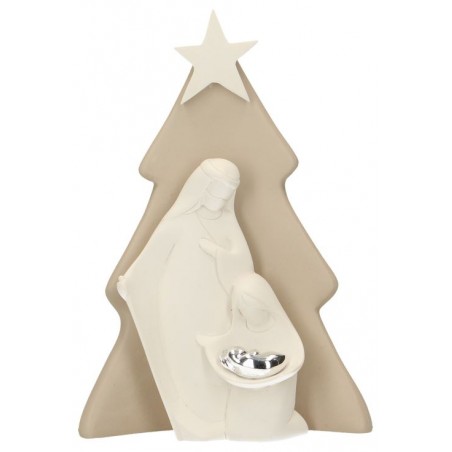 Heilige Familie in hars in met beige kerstboom (10 x15 cm)