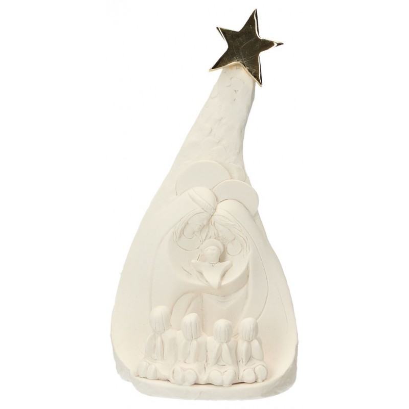 Heilige Familie met engelen in hars + gouden ster 17 cm