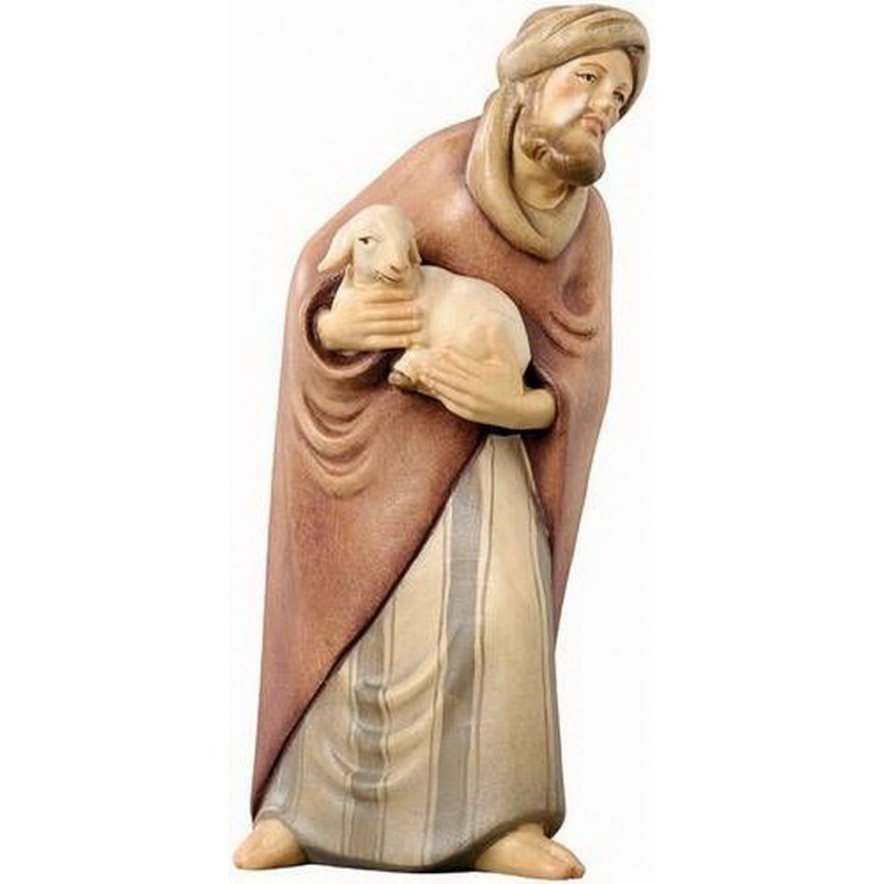 Houtsnijwerk Herder Met Schaap 10 Cm / Gekleurd