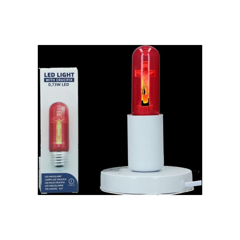 Metaal wit voetje met E27 LED rode glazen kruislamp