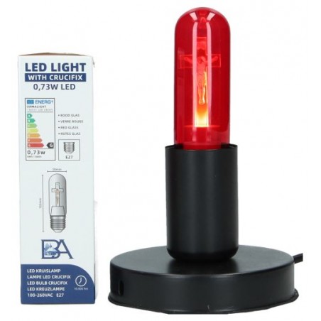 Metaal zwart voetje met E27 LED rode glazen kruislamp