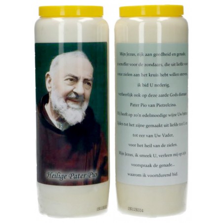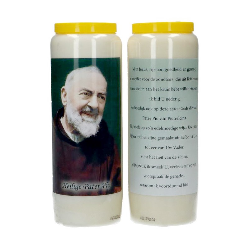 WIj bieden u een breed gamma van noveenkaarsen aan : glazen noveenkaarsen, geparfumeerde noveenkaarsen. Deze kaarsen kunnen geleverd worden met of zonder afbeelding. De afbeelding stelt de Heilige voor aan wie u uw gebet wenst te adresseren : Heilige Rita, Heilieg Benedictus,.. Het gebed om dagelijks te bidden bevindt zich in het noveenboekje.