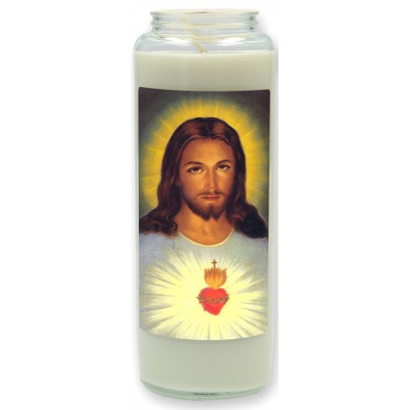 Noveenkaars In Glas / Wit / Heilig Hart Van Jezus