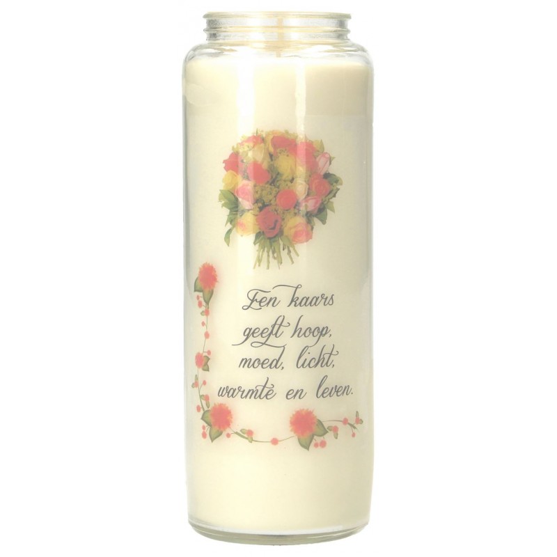 De glazen noveenkaars brandt onophoudend 9 dagen.