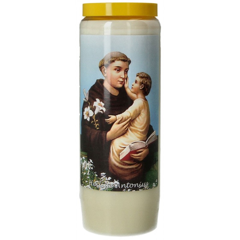 De noveenkaars is altijd wit, de kleur van het plastic kan variëren: rode noveen, blauwe noveen, zwarte noveen, enz.