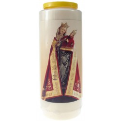 De noveenkaars is altijd wit, de kleur van het plastic kan variëren: rode noveen, blauwe noveen, zwarte noveen, enz.