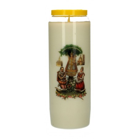 De noveenkaars is altijd wit, de kleur van het plastic kan variëren: rode noveen, blauwe noveen, zwarte noveen, enz.
