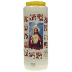 De noveenkaars is altijd wit, de kleur van het plastic kan variëren: rode noveen, blauwe noveen, zwarte noveen, enz.