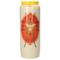 De noveenkaars is altijd wit, de kleur van het plastic kan variëren: rode noveen, blauwe noveen, zwarte noveen, enz.
