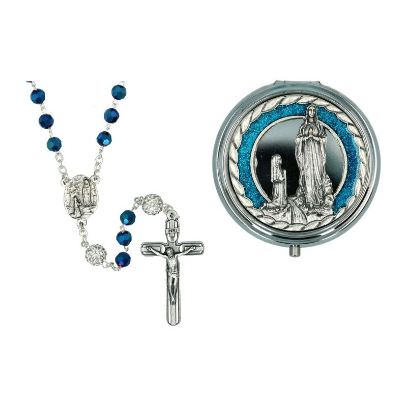 Rozenkrans Lourdes Versch. + Doosje metaal email blauw