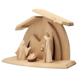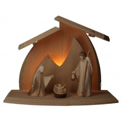 Houtsnijwerk Heilige Familie 10 cm + Kerststal met licht