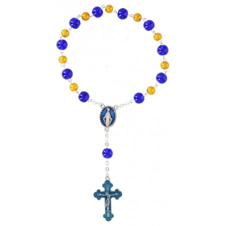 Tientje met gekleur en goud kralen (ass.) Hartje + kruisje met email