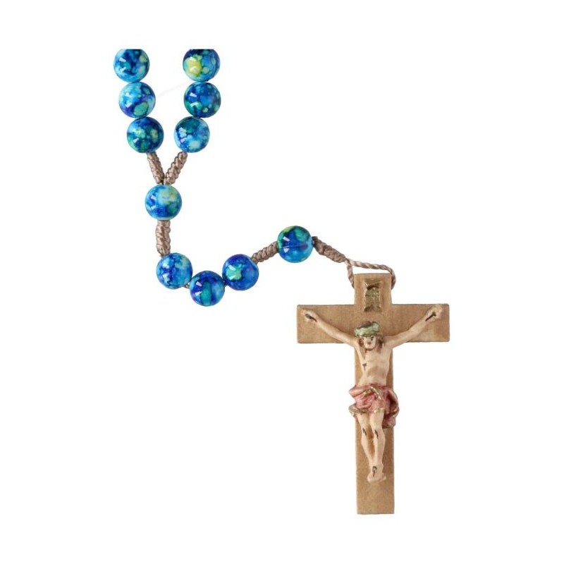 ;rozenkrans;houtop;koord;blauw;gemarmerd