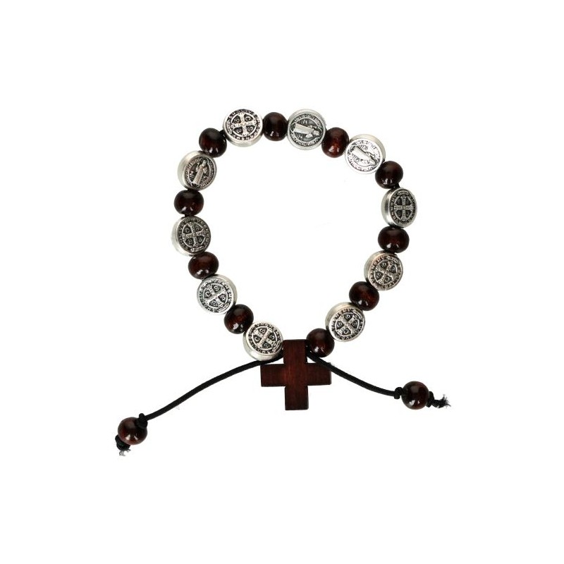 Armband / Koord Hout Donkerbruin + Med H. Benedictus