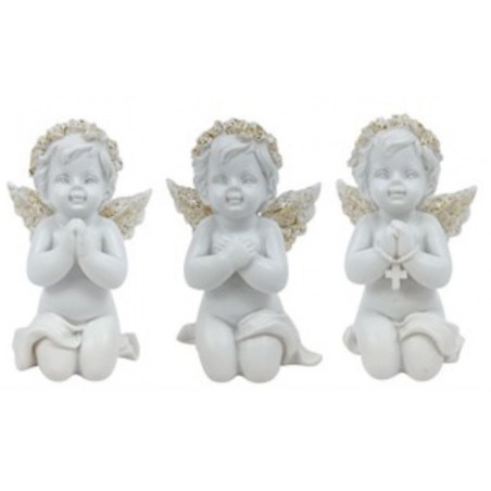 Set van 3 - Knielende engel wit en goud 6 cm 3 / set
