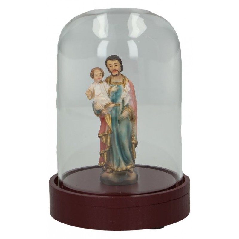 Glazen stolp van 13 cm met beeld van H. Jozef 8 cm