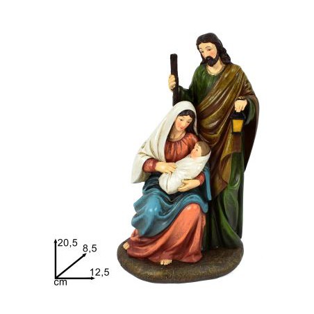 Grote gekleurde heilige Familie in hars. Hoogte : 21 cm. Prachtig gedecoreerd met felle kleuren.