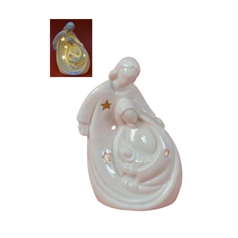 Middelmatige witte porseleinen Heilige Familie met licht (7 x 6 x 12 cm)