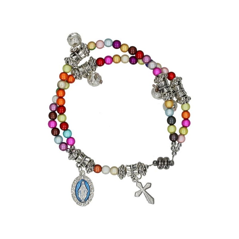 ;armbandrozenkrans;glas;multicolor;kruisje;medaille;magnetisch;slotje