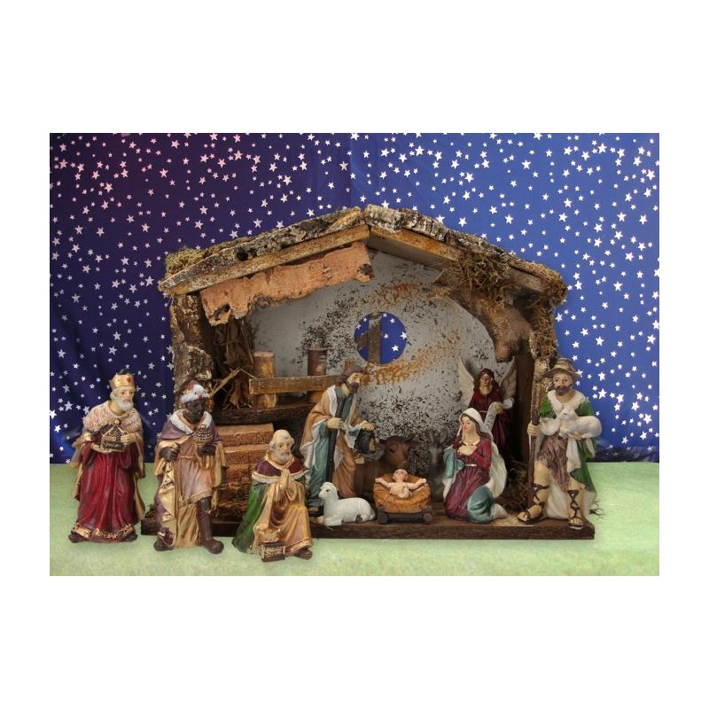 Kerstset : stal (33x18x24cm) 11 figuren 12 cm