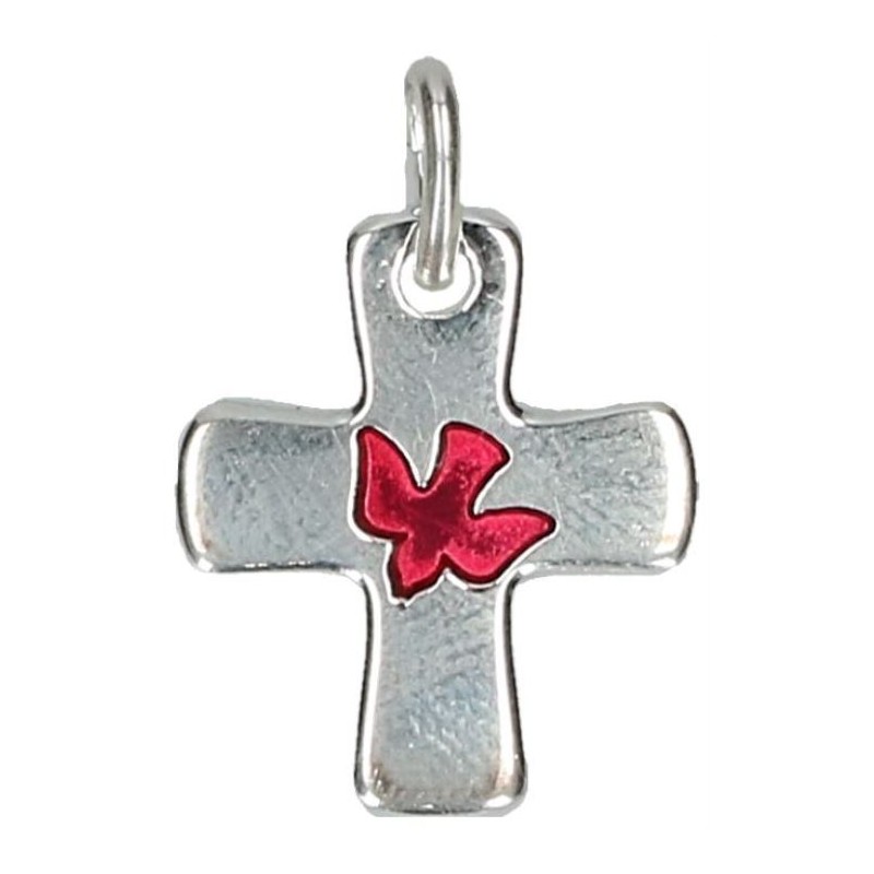 Kruisje 16 X 13 mm - Duif - Email Rood