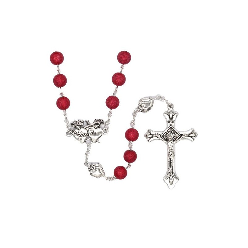 Rozenkrans rode kralen 8 mm + heilige harten