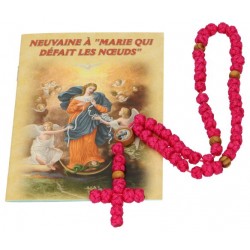 Rozenkrans van Maria di de knopen ontwart : het hartje en de onze vaders zijn gemaakt met de afbelding van maria die de knopen ontwart.