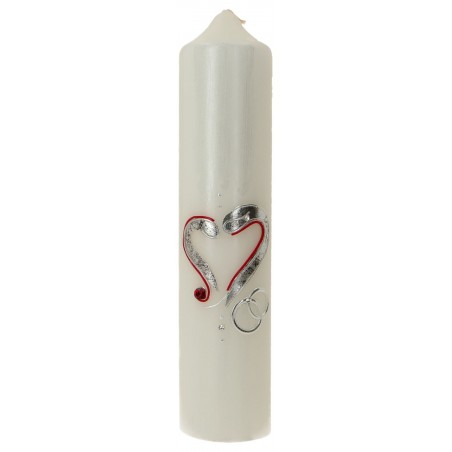 Kaars versierd met religieuze symbolen die het huwelijk voorstellen.De trouwkaars kan tijdens de huwelijksplechtigheid worden aangestoken. Deze kaars wordt gezegend door de priester en de gehuwden nemen ze daarna mee naar huis als aandenken aan deze heugelijke gebeurtenis. Iedere kaars is individueel verpakt in een kartonnen doos met doorschijnende deksel.