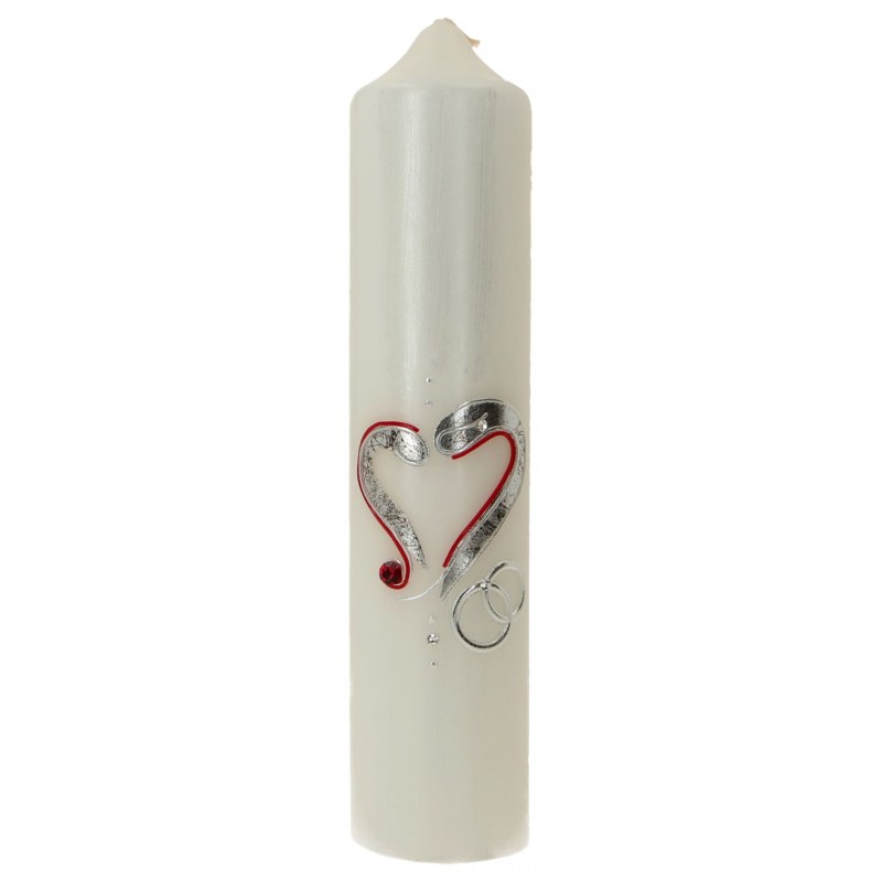 Huwelijkskaars - 265 x 60 mm - hart/zilveren ringen