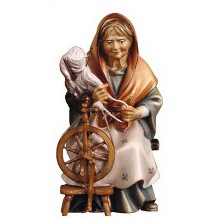 Vrouw met Spinnewiel : houtsnijwerk kerstgroep Ulrich 15 cm