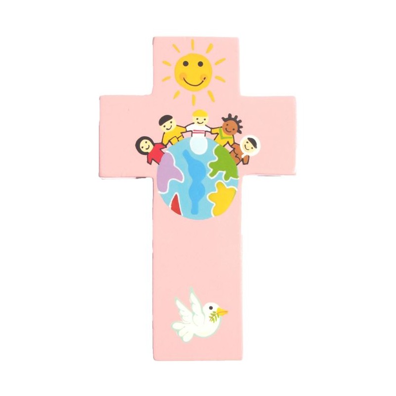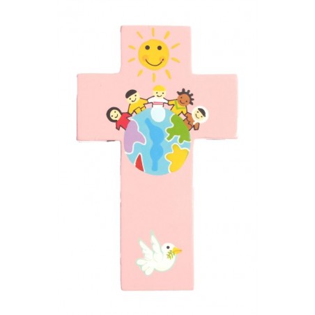 Kruisbeeld kinderen van de wereld in roze 12 cm