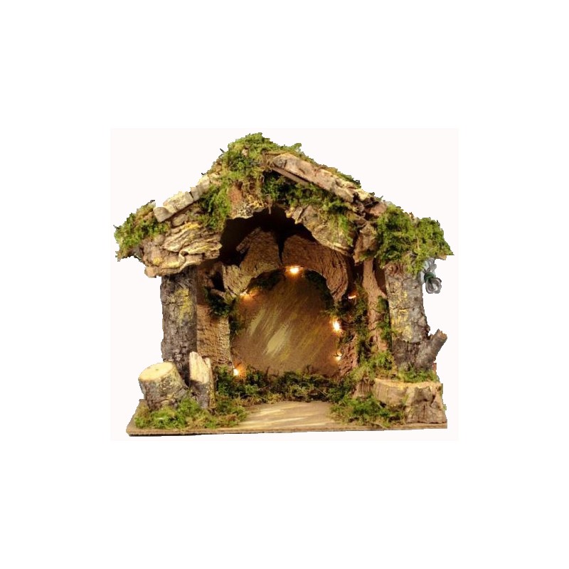 Deze kersthut, volledig handgemaakt in Italië, is ideaal voor een kleine kerstdecoratie. Batterijen niet bij geleverd zijn nodig voor de verlichting van deze stal. Dit huisje voor Kerstmis is met hout en echt mos bewerkt.