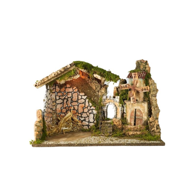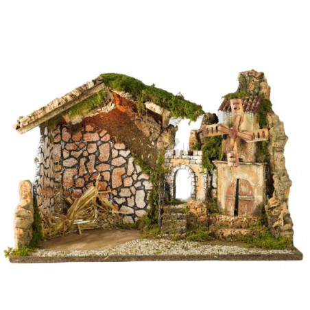 Lege Kerststal met molen en licht voor kerstfiguren van 15 cm (50x26x34cm)