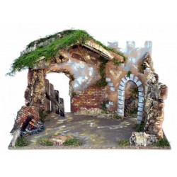 Deze kersthut, die op een stal lijkt, is handgemaakt in Italië met hout en echt mos. Deze hut is met stro versierd en verlicht met elektrische lampjes (Europese stekker). Ideaal voor mensen die een grote kerstdecoratie zoeken.