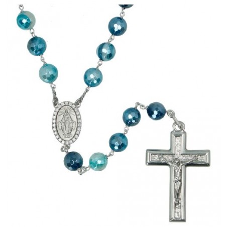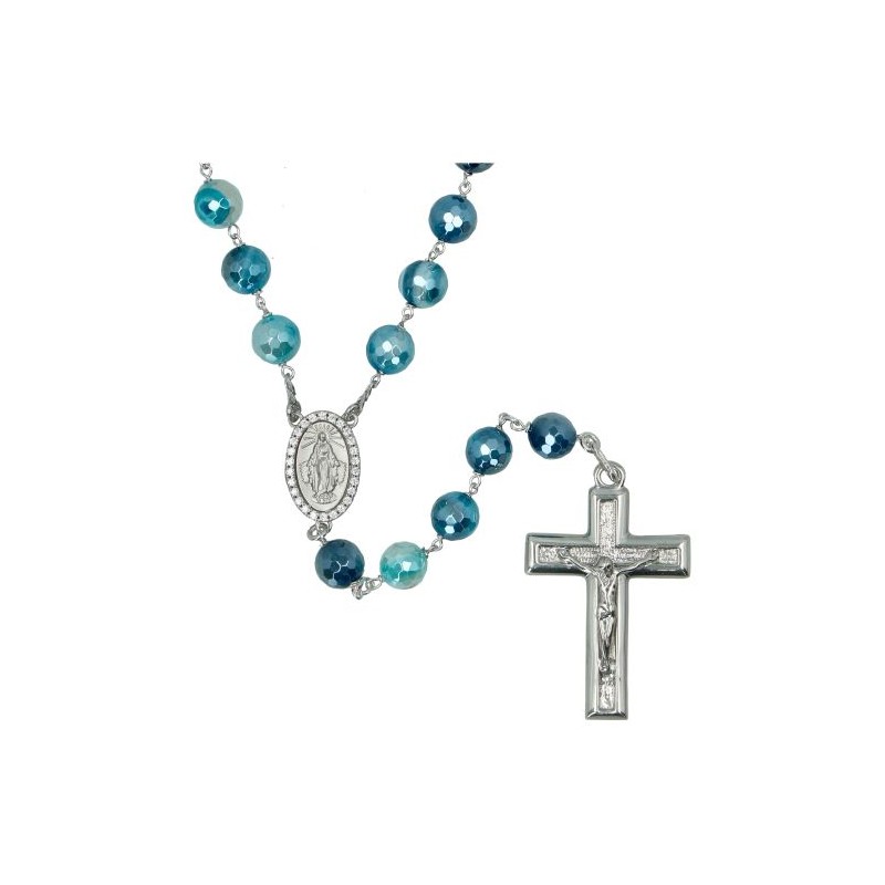 Rozenkrans Zilver + Rhodium Agatha blauw 8 mm