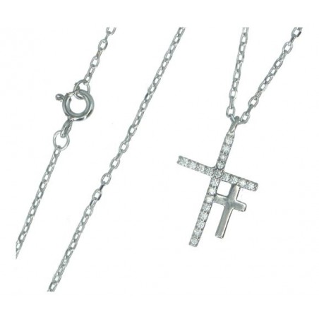 Hanger dubbele kruis in zilver + ketting