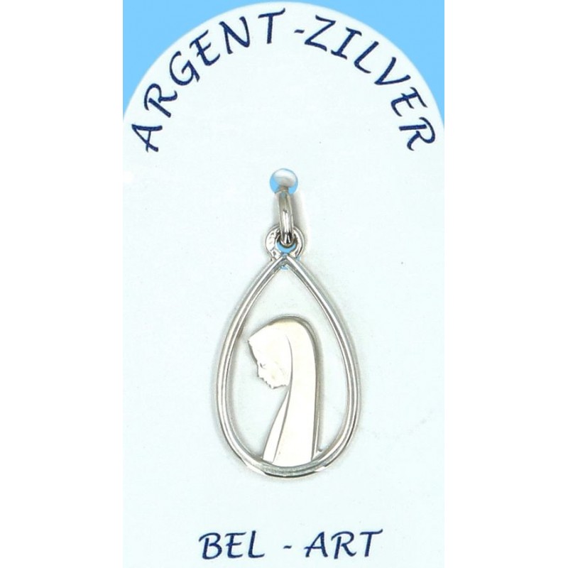 Medaille zilver Maria opengewerkt / druppel 23 X 15 mm
